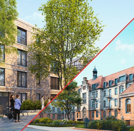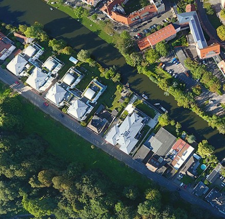 Unweit vom Schwesterprojekt „Hammerleev“ entsteht in attraktiver Wasserlage direkt am Mittelkanal das Wohnensemble „Mien Leev“. Es verbindet hohe Wohnqualität für alle Wohnkonzepte in zentralster Lage.