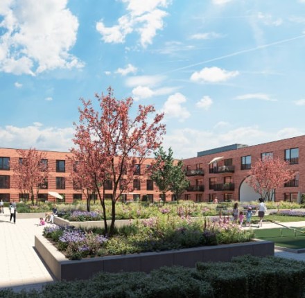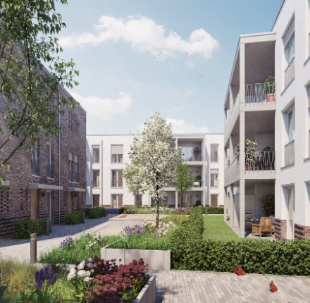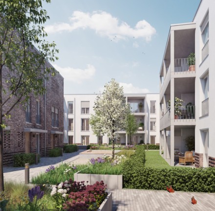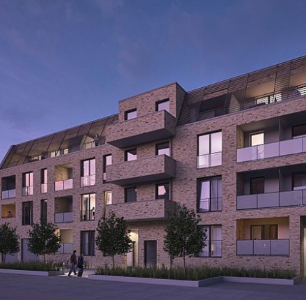 25.10.2017 | Ahrensburg LindenhofMit der Entstehung von insgesamt 62 Mietwohnungen sowie Dienstleistungsflächen, wird das Areal des einstigen „Hotel Lindenhof“ im Sinne seines Ursprungs wieder in den Lebensmittelpunkt der Menschen gerückt - als heimatliches Domizil, geselliger Treffpunkt und zur Versorgung des täglichen Bedarfs. Die verkehrsgünstige Lage in unmittelbarer Nähe zum Bahnhof sowie die nahegelegene Innenstadt von Ahrensburg, lassen keine Wünsche offen. So fügt sich das moderne Gebäude mit den verwendeten Materialien nahtlos in die Umgebung ein und bietet den künftigen Bewohnern im begrünten Innenhof Freiraum und Platz für Erholung.