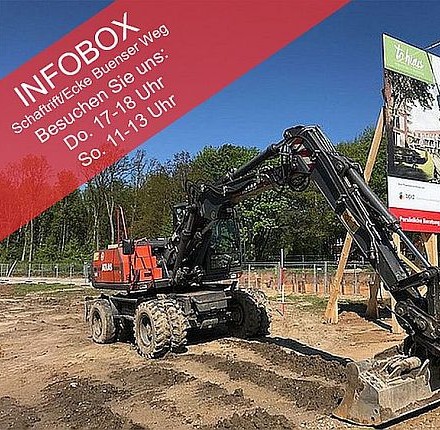Besuchen Sie uns doch in der Infobox direkt am Baufeld, Schaftrift Ecke Buenser Weg, donnerstags von 17 bis 18 Uhr oder sonntags von 11 bis 13.00 Uhr.