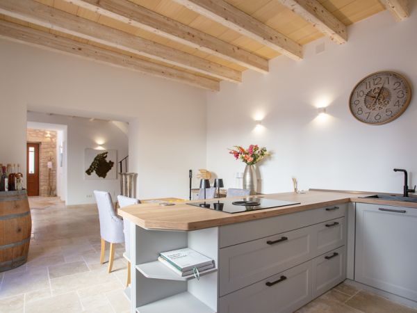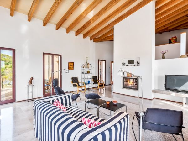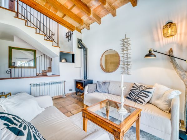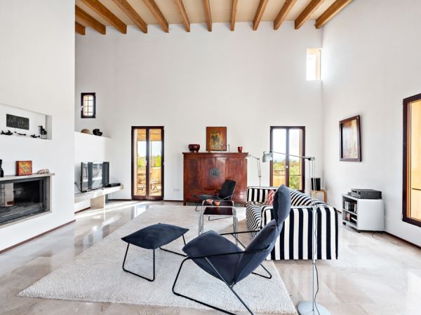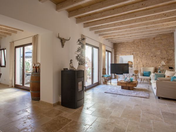 Die beiden Galerien im 1. und 2. Obergeschoss verleihen den Wohnräumen eine gewisse Leichtigkeit, die mallorquinischen Deckenbalken, die schönen Holztüren und die vereinzelten Steinverkleidungen an einigen Wänden sorgen für ein modernes mallorquinisches Ambiente.