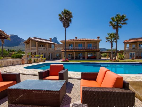Das grosse Anwesen wird Sie beeindrucken. Auf zwei Ebenen verteilen sich 7 Schlafzimmer und 5 Badezimmer (2 davon en Suite mit Vollbad). Alle Räumlichkeiten sind Licht durchflutet, der grosse Salon- und Speisebereich im 90 Gradwinkel ist auf 2 Seiten mit großen Pamoramafenstertüren ausgestattet.