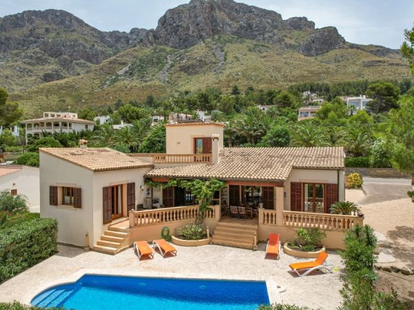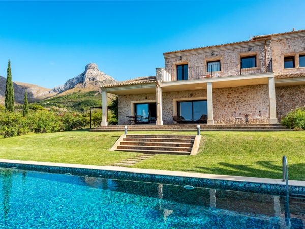 Von dem ländlich gelegenen Anwesen mit Pool genießen Sie eine beeindruckende Panoramasicht über die Bucht von Alcudia, das offene Meer und die Skyline des Serres de Llevant Gebirges.