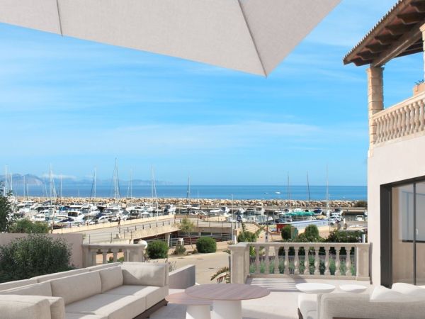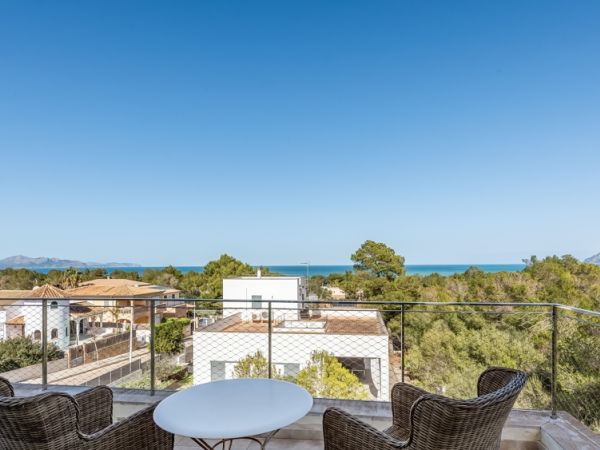 In bester Lage direkt zum Eingang des Naturstrandes und mit wunderbarer Sicht über die Bucht von Alcudia, des Naturschutzgebietes und den Lichtern der Nacht mit Blick auf Son Serra de Marina.