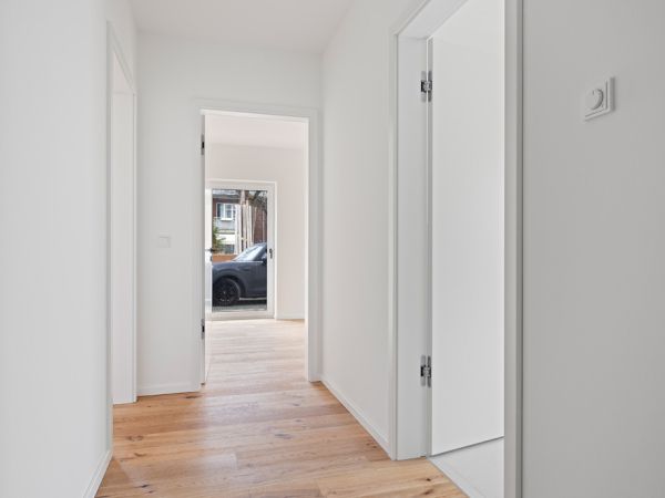 In allen Wohnräumen wurde ein hochwertiger Designboden von Bembé verlegt, der eine moderne Optik mit angenehmem Wohnkomfort verbindet. Die nachträglich im Jahr 2021 eingebauten deutschen Markenfenster von Rekord sorgen für eine verbesserte Wärmedämmung sowie einen hohen Schallschutz.
