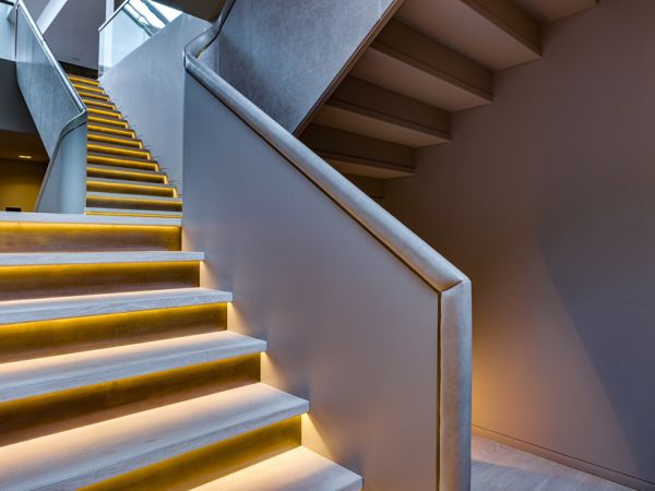 • Glas-Systemwände im Treppenbereich und der Ankleide