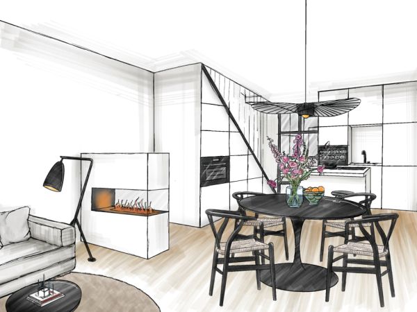 • Hybrid-Kamin als stilvoller Raumtrenner