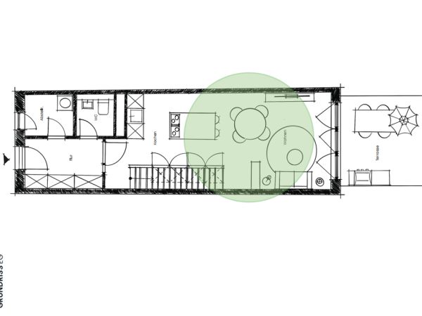 • Offener Koch-Wohnbereich mit Möglichkeit zu integrierter Küchenlösung im Treppenbereich – ein absoluter Hingucker