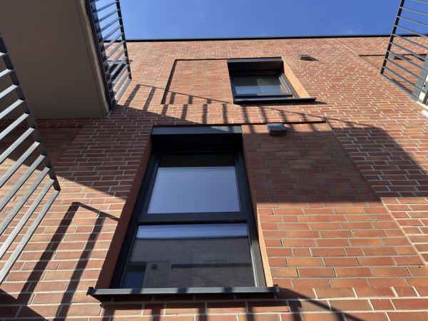 Überwiegend bodentiefe Holzfenster mit 3-fach-Verglasung und elektrischen Jalousien in den Schlaf-/und Kinderzimmern sorgen für eine gute Belichtung und eine freundliche Atmosphäre.